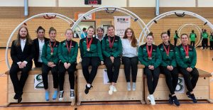 Um 10 Uhr begann der Mannschaftswettkampf bei dem pro Mannschaft 4-6 Athlet*innen in den Disziplinen Sprung, Spirale und Gerade mit und ohne Musik antreten. Für die Mannschaft des TV 1876 gingen Annika Hug, Amrei Heiß, Paula Bambey, Emma Fink, Lotta Ulrich und Sophie Schmitt an den Start. Begleitet wurden die jungen Athlet*innen dabei von ihren Trainerinnen Martina Camenzind und Ulrike Jarosch, sowie den Kampfrichter*innen Stefanie Peisker und Nils Emmerich. Im Wettstreit gegen die anderen Mannschaften aus Baden-Württemberg konnten die Aktiven ihre Leistungen aus dem Training abrufen und kamen ohne größere Patzer durch alle Übungen. Schlussendlich gewannen sie mit einem großen Vorsprung von knapp 10 Punkten den Titel und konnten sich über die Goldmedaille freuen.
