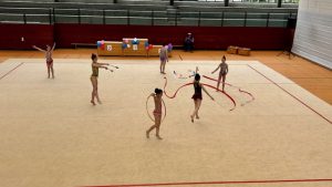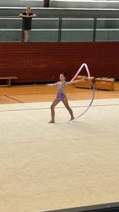 Pünktlich um 11 Uhr begann der Wettbewerb mit einer erstaunlichen Vielfalt an Kürübungen und beeindruckenden Darbietungen. Die jungen Gymnastinnen zeigten ihr Können in den verschiedenen Disziplinen wie Ball, Reifen, Keulen und Band. Die Halle war mit einer euphorischen Atmosphäre erfüllt, während die Teilnehmerinnen ihre anspruchsvollen Choreografien mit Eleganz und Präzision präsentierten.