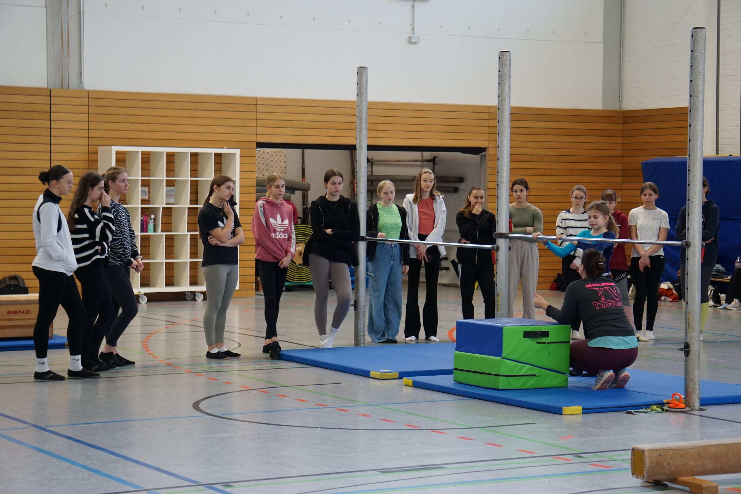 Die Schulung konzentrierte sich auf die Grundlagen des Boden- und Reckturnens. Am Reck wurden wichtige Elemente wie der Aufzug, der Umschwung und der Unterschwung vermittelt, insbesondere im Kontext der P4-Kategorie. Auf dem Boden erhielten die Teilnehmer Tipps zum richtigen Halten und Heranführen an Grundelemente wie Rollen und Handstand.