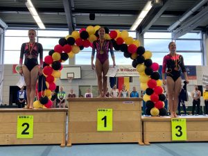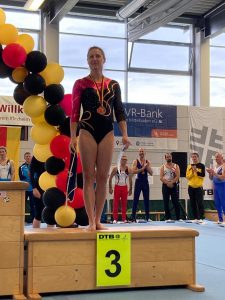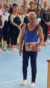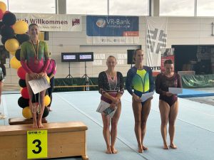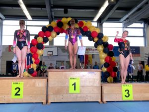 Heike Steinkuhle vom Heidelberger TV hatte ihre Verletzung von den Badischen Meisterschaften überwunden und turnte einen stabilen Wettkampf mit schwierigen Übungsteilen. Dafür gab es die Bronzemedaille. Auch Christine Keller (SGK) freute sich sehr über ihren 5. Platz in der AK 40+. Somit ging ihre Wettkampfstrategie – nur turnen, was man wirklich gut beherrscht, und dies dann in bestmöglicher Ausführung – voll auf, denn bei dem hohen Niveau in ihrer Altersklasse ging die ein oder andere Turnerin ein zu hohes Risiko ein und patzte.